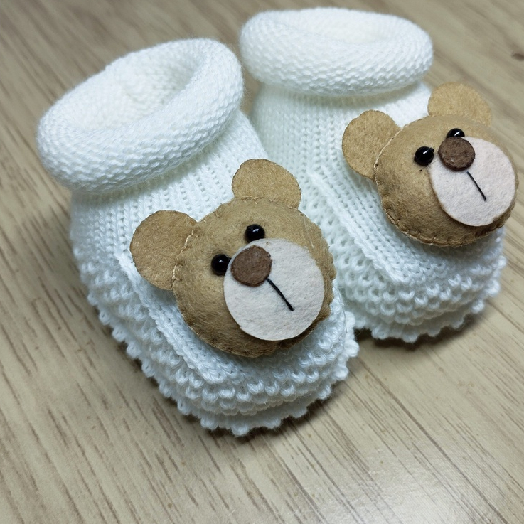 Sapatinho/Botinha Recém Nascido RN até 2 Meses em Tricô de Linha (Bebê) (ursinho marrom menino)