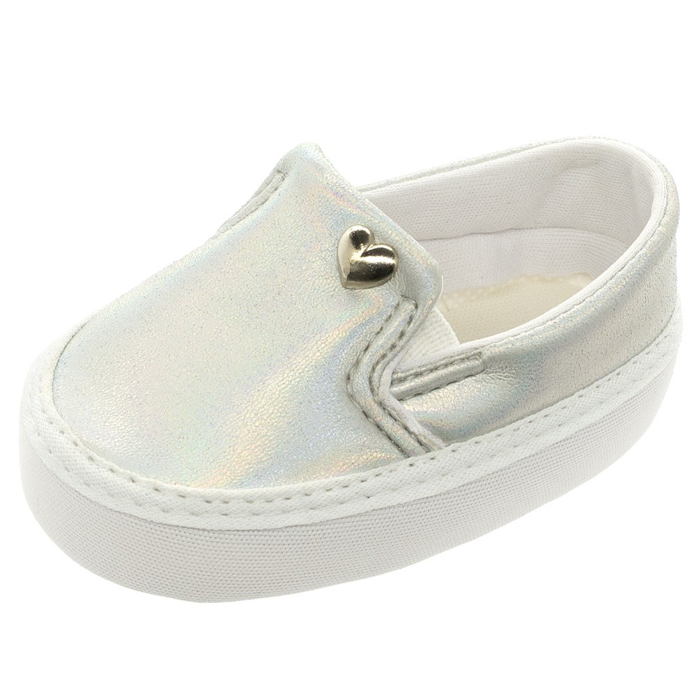 Sapatinho de bebe Menina Slip On Coração Metal