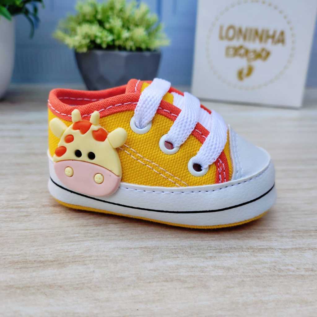 Sapatinho de Bebê recém-nascido Tênis Amarelo viés Laranja enfeite de Girafinha