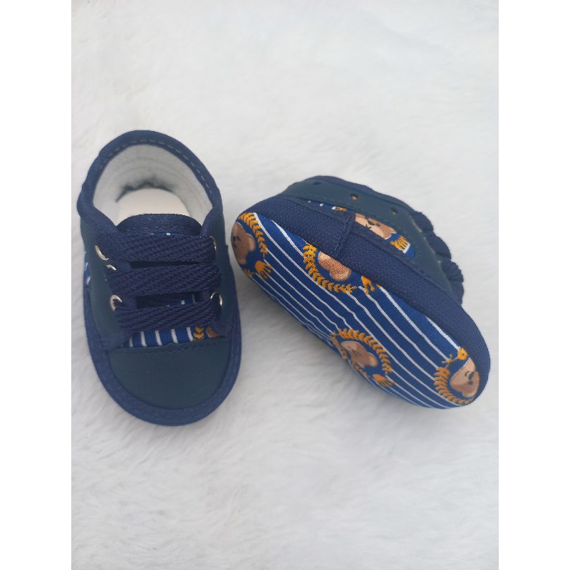 Sapatinho para bebê azul com ursinho sapato bebe menino calçado infantil macio recém nascido