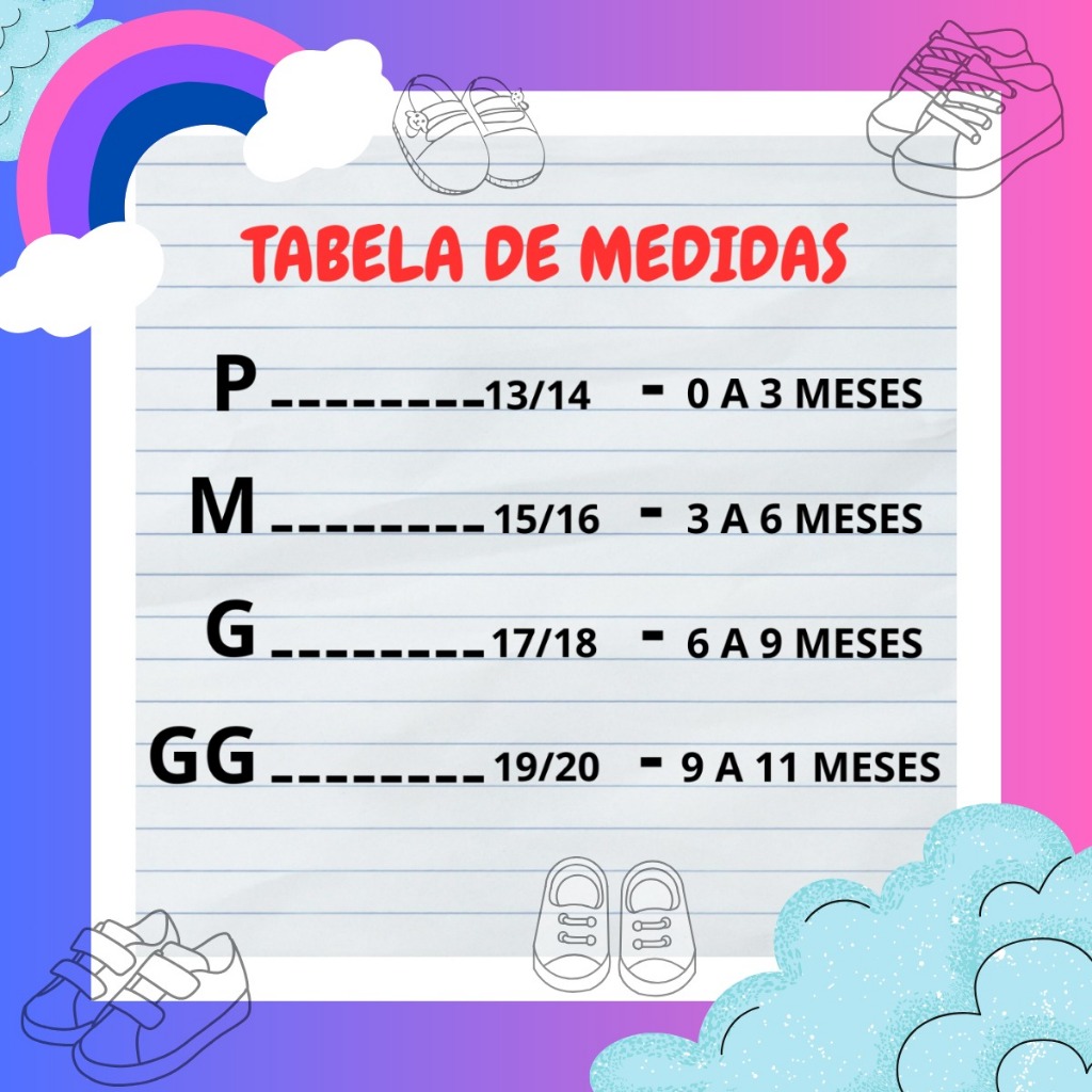 Sapatinho infantil, calçados antialérgicos para bebê, recém-nascido, extremamente confortável, para meninos e meninas. - Produtos a pronta entrega! - Envio em até 24 horas úteis! - Produto de alta qualidade 100% nacional e original! - Produtos com total garantia contra defeitos de fabricação! - Receba o produto que comprou ou receba seu dinheiro de volta. - Devolução gratuita, independente do motivo do cliente. CARACTERÍSTICAS DO PRODUTO: - NUMERAÇÃO: ***ORIENTAMOS SEGUIR A TABELA DE MEDIDAS, PELO TAMANHO DA PALMILHA*** P Referente a 13/14 – 0 a 3 meses M Referente a 15/16 – 3 a 6 meses G Referente a 17/18 – 6 a 9 meses GG Referente a19/20 – 9 a 11 meses - Calçado de ótima qualidade, confeccionado em sarja 100% algodão, todo costurado para maior durabilidade, forro em espuma/jacar, com excelente acabamento, variação em modelos com cadarço 100% algodão, podendo amarrar ajustando ao pezinho do bebê, modelos com ponta autocolante, com maior praticidade ao calçar. - Trabalhamos com diversas variações em modelos como: Tênis baby cano alto e cano baixo, calçados baby antiderrapante, sapatilhas boneca, sandálias baby masculinas e femininas e calçados do tamanho 16 ao 24. CONSERVAÇÃO E LIMPEZA Para maior durabilidade de seu produto, siga algumas dicas para limpeza e conservação : - Você deve sempre lavar o sapatinho do seu bebe a mão, não indicamos o uso de maquina de lavar/secar. -Não deve ser utilizado alvejante e produtos químicos, aconselhamos o uso de sabão neutro apenas. -Também não é indicado limpar a seco. -Seu sapatinho deve ser seco de maneira natural, de preferência á sombra. - Evite expor o calçado a umidade, guarde-o sempre em locais secos e arejados ! DÚVIDAS FREQUENTES (P) Os produtos são a pronta entrega? Em quanto tempo o envio é feito? (R) Sim, são a pronta entrega e o envio é feito no mesmo dia ou em até 24 horas úteis após a confirmação da compra! (P) Os produtos são novos? (R) Todos os nossos produtos são novos, e vão em uma caixinha. (P) Irei receber o mesmo produto da foto? (R) Sim. As fotos são originais do produto. (P) Qual a diferença da compra no Boleto e do Cartão de Crédito para a postagem do produto? (R) Compras no Boleto demora até 48 horas para cair em nosso sistema por motivo da compensação bancária, mas assim que confirmado o pagamento será postado. Compras no Cartão de crédito caem em nosso sistema no prazo máximo de 2 horas. Assim o produto é postado mais rápido. ***AINDA TENDO DÚVIDAS NOS FAÇA UMA PERGUNTA OU ACESSE O CHAT.*** Nós somos a LVB BABY, uma empresa de calçados infantil, com 10 anos de mercado, localizada em Birigui, interior de São Paulo. Nosso maior compromisso é trazer ao seu bebê, conforto, estilo e bem estar, através de nossos produtos com a mais alta qualidade. AGUARDAMOS SUA COMPRA, NOSSO MAIOR COMPROMISSO É SATISFAÇÃO DE NOSSOS CLIENTES!