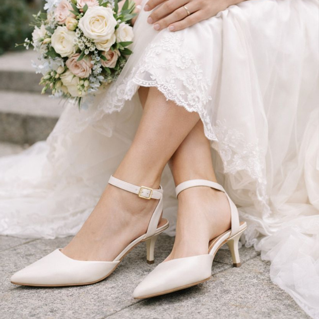 Sapato de Noiva Branco Slingback Salto Baixo Com Ajuste Tornozelo