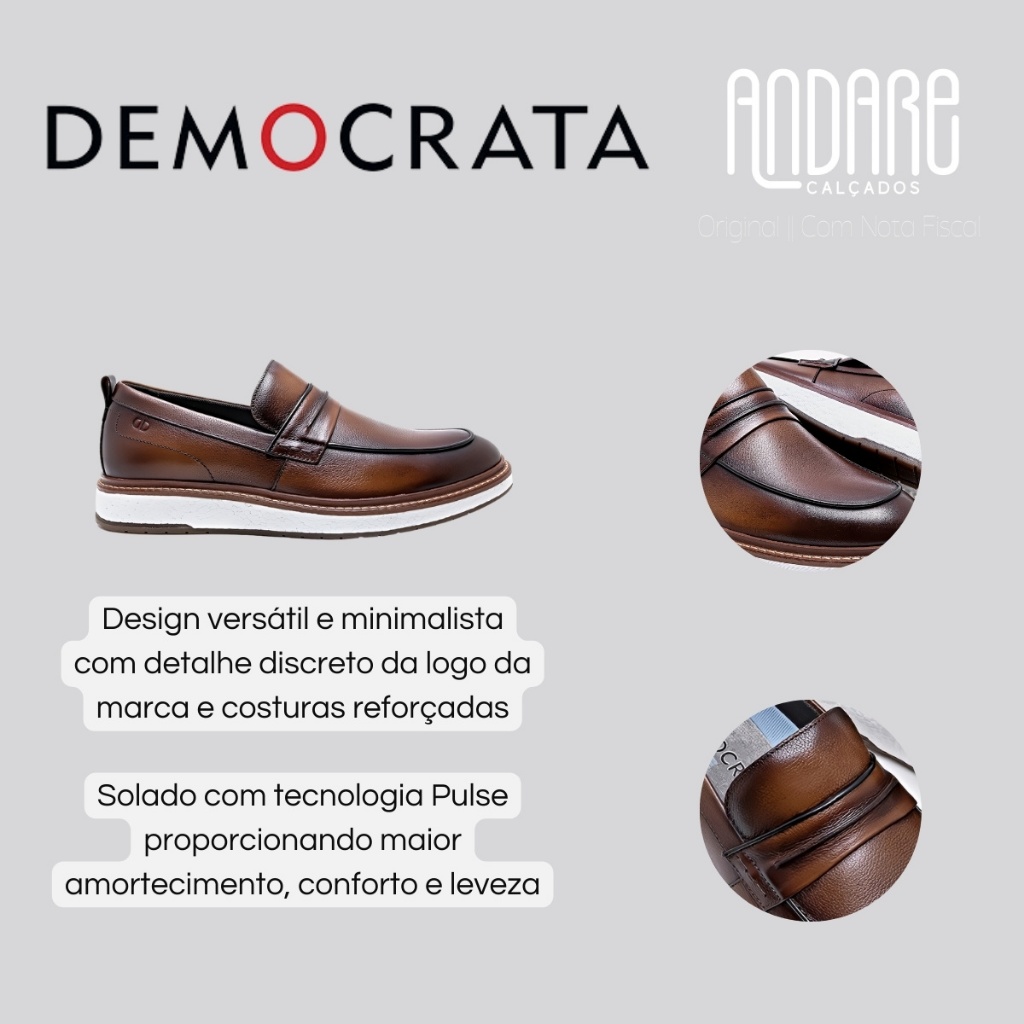 CABEDAL: Couro FORMA: Normal PALMILHA: EVA SOLADO: TPU ENVIO: Na caixa do fabricante GARANTIA: Contra defeitos de fabricação - 30 dias O Sapato Metropolitan Clark Pulse Democrata é uma obra-prima do design contemporâneo, especialmente concebido para o homem moderno que valoriza o equilíbrio entre elegância, conforto e funcionalidade. Com uma estética refinada, este calçado é perfeito para diversas ocasiões, do ambiente de trabalho a eventos sociais. Confeccionado em couro de alta qualidade, garantindo durabilidade e um acabamento impecável. O Metropolitan Clark se destaca pelo seu design sofisticado e atemporal, com linhas suaves e bem definidas e bico arredondado, que não apenas contribui para a elegância, mas também garante um ajuste confortável aos pés. Seu visual minimalista torna o sapato extremamente versátil, facilitando a transição entre ambientes formais e informais. Os detalhes, como as costuras bem definidas e a logo da marca aplicada discretamente na lateral do cabedal, reforçam o visual moderno e clássico do modelo, tornando-o um aliado indispensável no guarda-roupa masculino. A versatilidade do Metropolitan Clark também se reflete em sua facilidade de uso. Com um sistema de calce prático, ele é ideal para aqueles momentos em que você precisa se arrumar rapidamente, sem abrir mão do estilo. Internamente, o mocassim é forrado com materiais que garantem respirabilidade, ajudando a manter os pés frescos e secos ao longo do dia. A palmilha é anatômica, extremamente macia, tornando cada passo uma experiência agradável. Um dos seus grandes diferenciais é seu solado flexível antiderrapante em TPU com tecnologia Pulse, que absorver e armazena a energia de cada passo, transformando-a em impulso para manter você em movimento com menos esforço. Além de passos mais energizados, o Pulse também alivia a pressão sobre os pés e articulações, proporcionando um passo suave, confortável e seguro. TABELA DE MEDIDAS Tamanho 37 - 26cm Tamanho 38 - 26.5cm Tamanho 39 - 27.5cm Tamanho 40 - 28cm Tamanho 41 - 28.5cm Tamanho 42 - 29.5cm Tamanho 43 - 30cm Tamanho 44 - 30.5cm