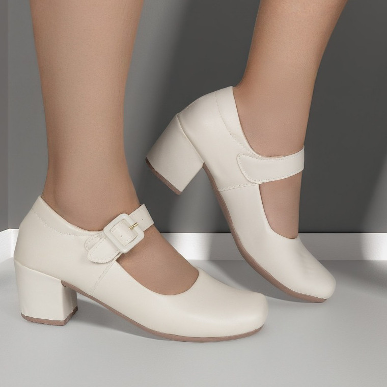 Sapato Feminino Mary Jane com Salto Bloco e Fivela Estilo Retrô e Super Conforto Macerata Ref: 170