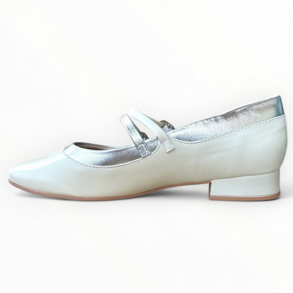 Sapato Feminino Off White com Prata Ramarim 2415203-1