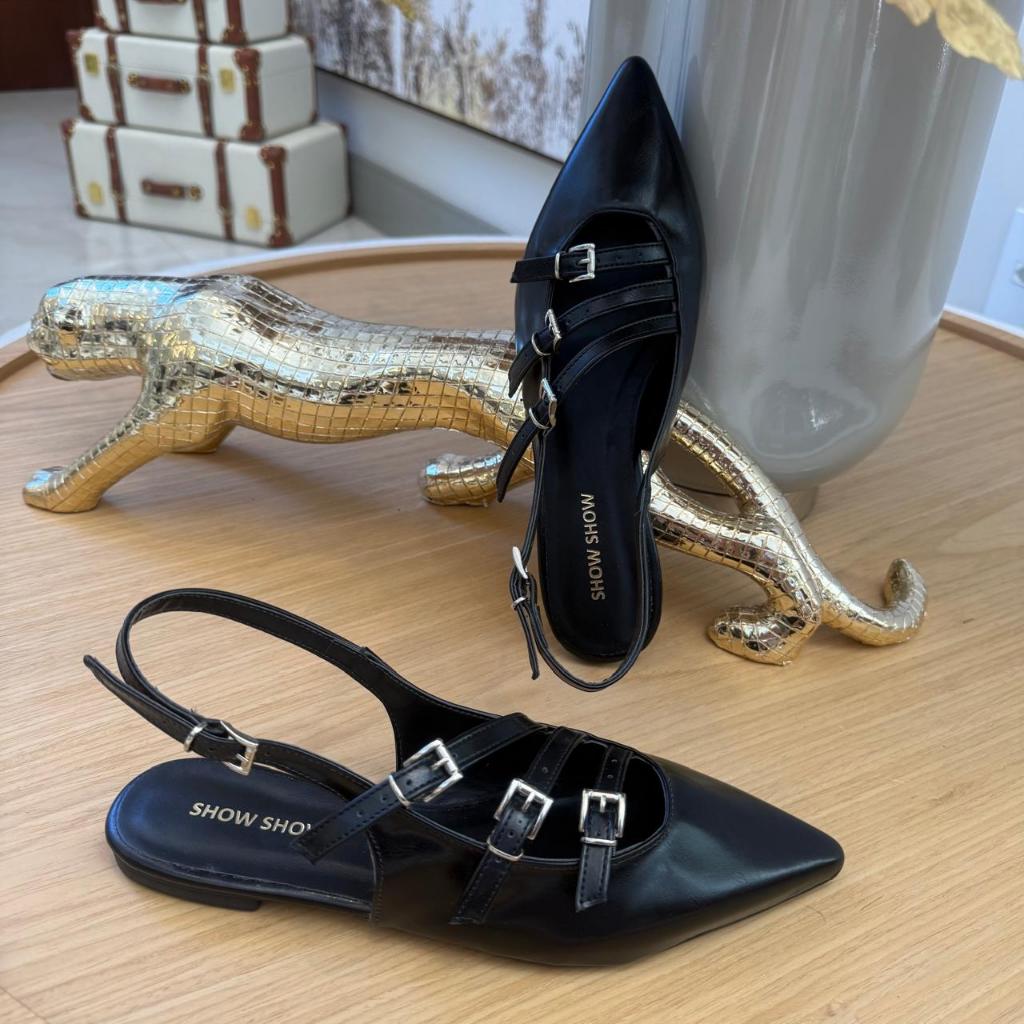 Sapato Feminino Sapatilha Slingback Rasteira Bico Fino Fivelas Mule Social Casual Show Show