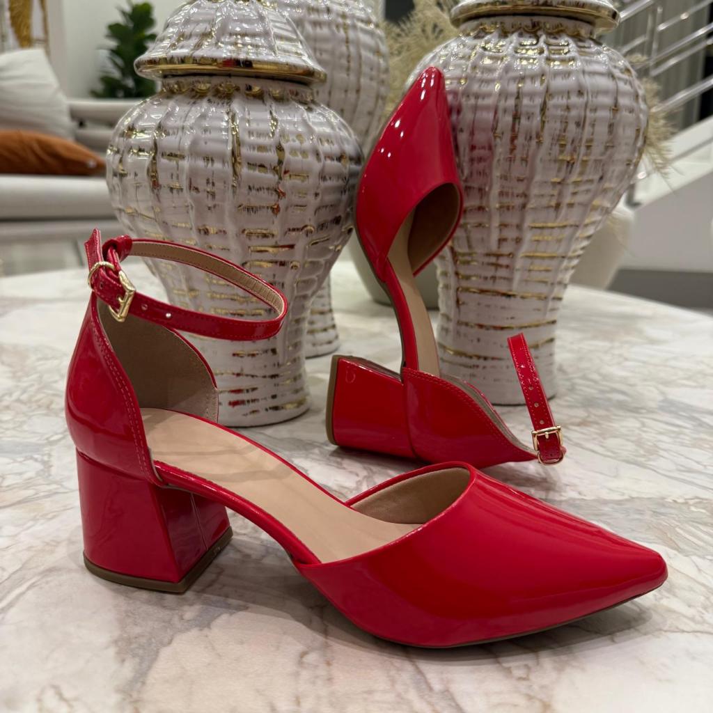 Sapato Feminino Scarpin Bico Fino Salto Bloco Grosso Saia e Blusa Salomé Show Show Noiva Casamento