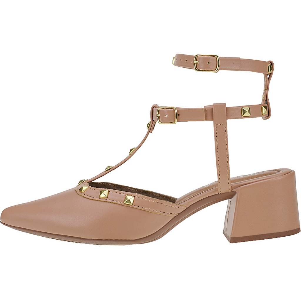 Sapato Feminino Scarpin Bico Fino Salto Bloco Shekinah Boneca Pirâmides Tachas Spikes Rock Chic