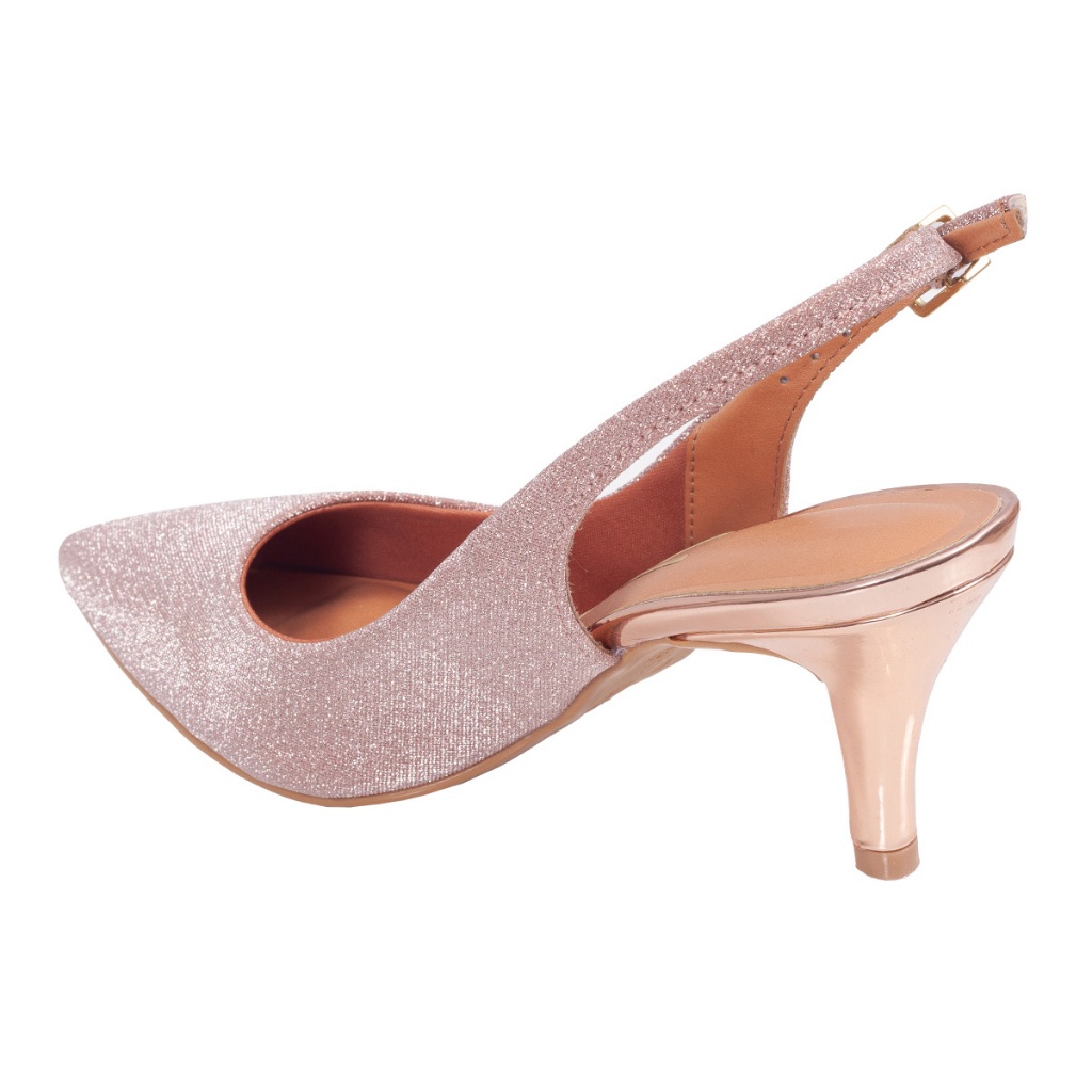 Sapato Feminino Scarpin Casual Slingback Salto Médio Tela Shine 1185.700 Linha Festa