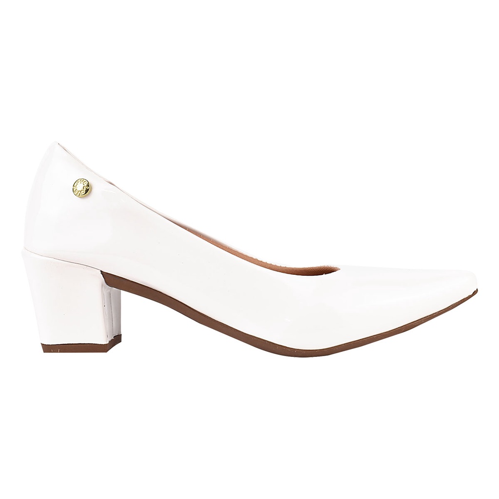 Sapato Feminino Scarpin Salto Bloco Social Verniz Branco