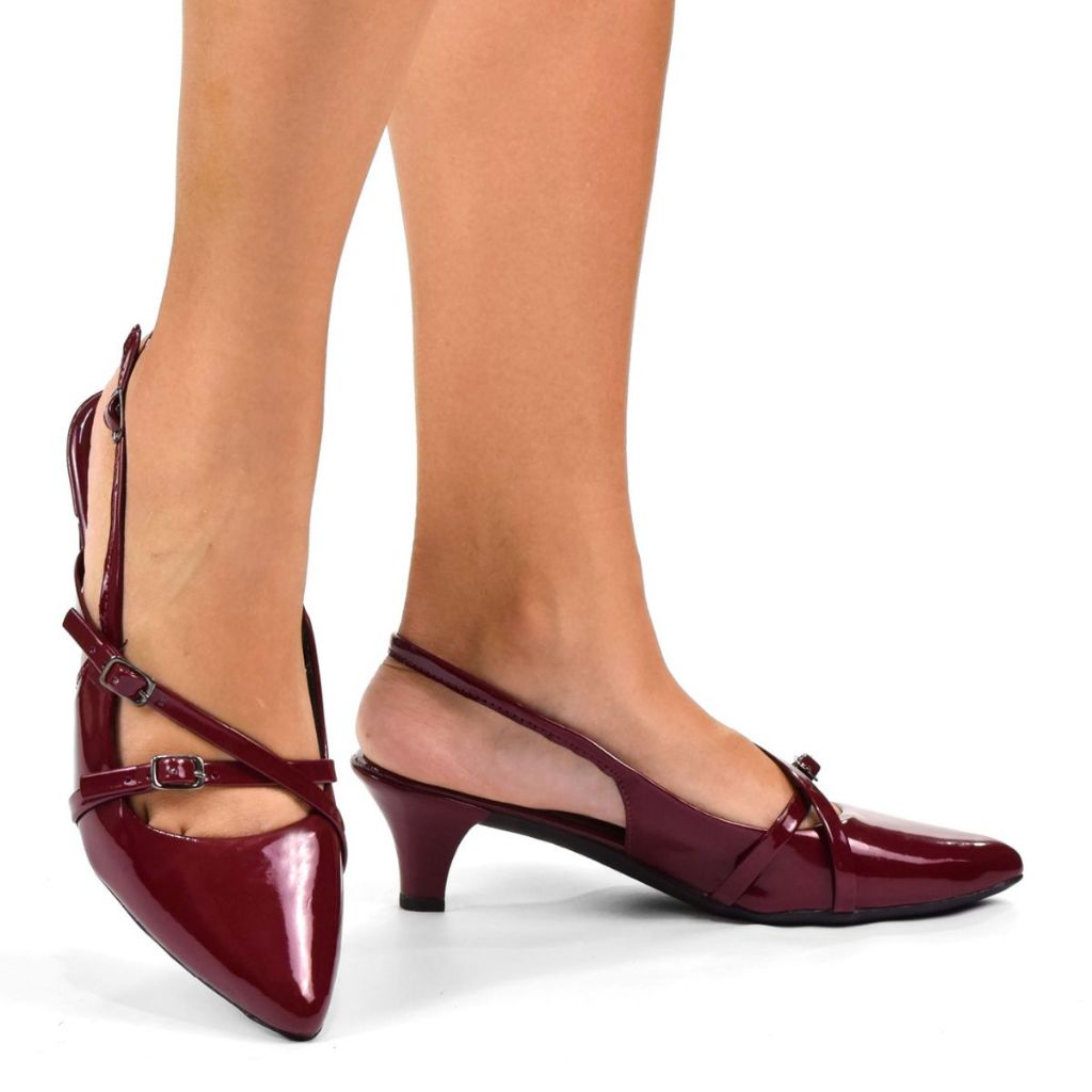 Sapato Feminino Scarpin Social Slingback Verniz Salto Fino Médio Bico Fino Retrô Estiloso Moderno