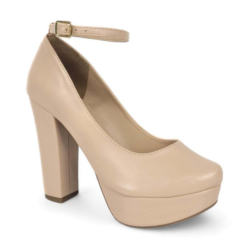 Sapato Meia Pata Salto Grosso Tira Tornozelo