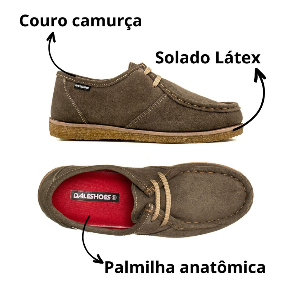 Sapato Mocassim Cacareco London Candian couro camurça legitimo sola crepe palmilha anatômica EVA.