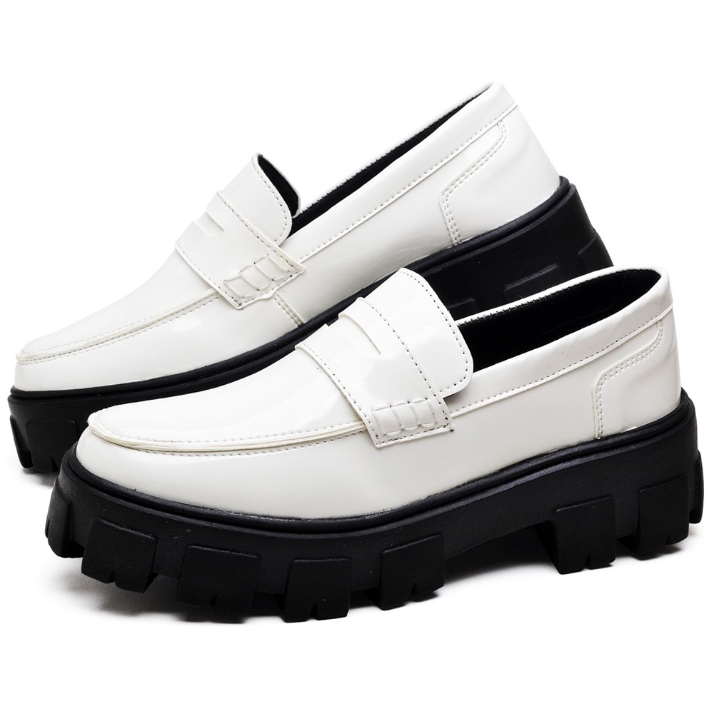 Sapato Mocassim Dubuy Oxford Feminino Tratorada Branco Verniz Still 1404FG
