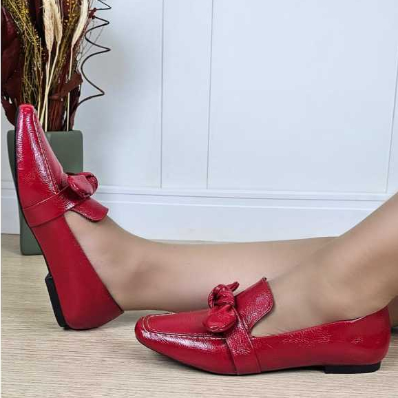 Sapato Mocassim Feminino Verniz Laço Sapatilha Rasteira Conforto Casual Elegante Antiderrapante