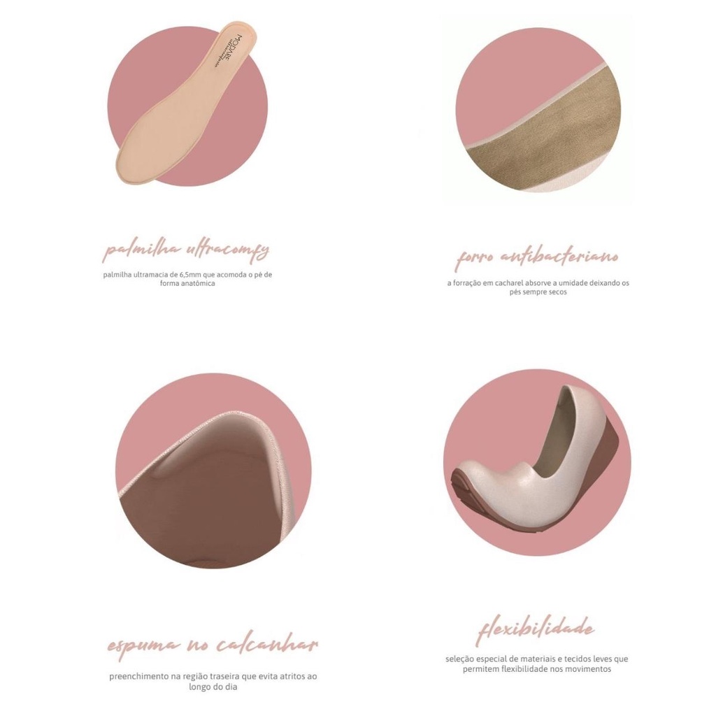 O sapato anabela da Modare é perfeito para você que busca tanto uma opção para uma ocasião casual, quanto para o trabalho e uso diário. Este modelo conta com diversas tecnologias voltadas ao conforto como: Palmilha Ultracomfy: palmilha ultramacia de 6,5cmm que acomoda o pé de forma anatômica. Forro Antibacteriano: A forração em cacharel absorve a umidade deixando os pés sempre secos Espuma no calcanhar: preenchimento na região traseira que evita atritos ao longo do dia. Flexibilidade: seleção especial de materiais e tecidos leves que permitem flexibilidade nos movimentos. Possui salto baixo de 3,5cm.
