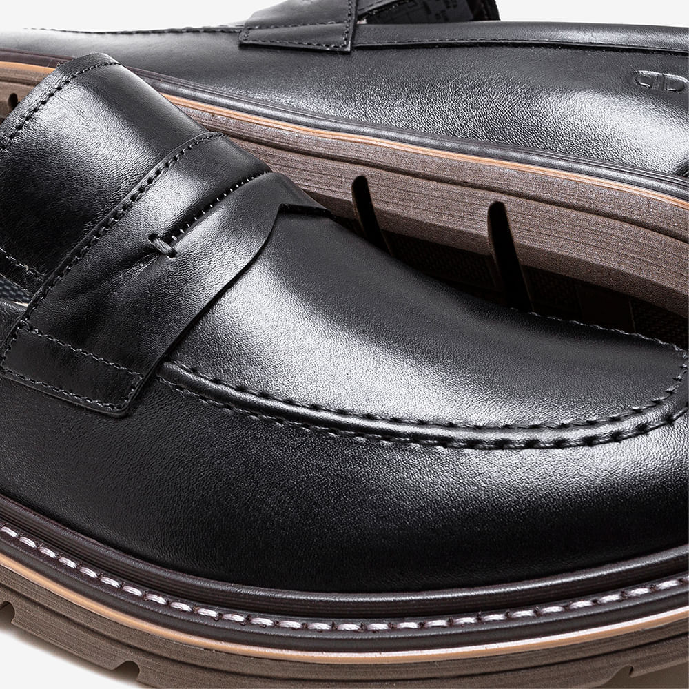 O Sapato de Couro Metropolitan Jeff, se destaca por seu solado com design moderno.Ele possui calce fácil, palmilha macia, bico arredondado e cabedal com recortes no couro. A sola é feita de micro expandido blaqueada com detalhe tratorado, o que proporciona mais segurança e durabilidade. Material: CouroSolado: Micro ExpandidoEstilo: TratoradoAltura do Solado: 3cmFechamento: Calce fácilAcabamento: Couro