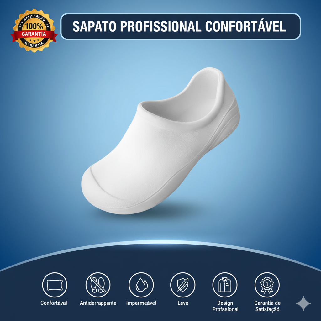 Sapato Profissional Top Conforto Enfermagem Cozinha Hospital – Ultra Leve, Super Antiderrapante, Resistência Garantida
