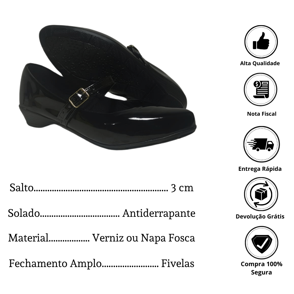 | Sapato Mary Jane Feminino Boneca Bico Quadrado Salto Geométrico Munita | R$ 65,97 | 6% | 4.9/5 | 150 |