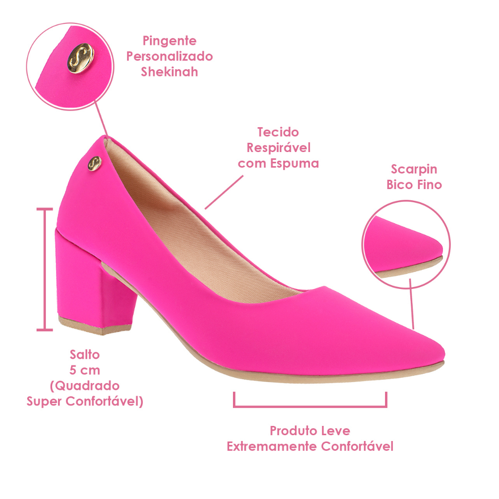 Sapato Scarpin Bico Fino Conforto Shekinah Salto Baixo Grosso Sapatilha Blogueira Moda Lançamento