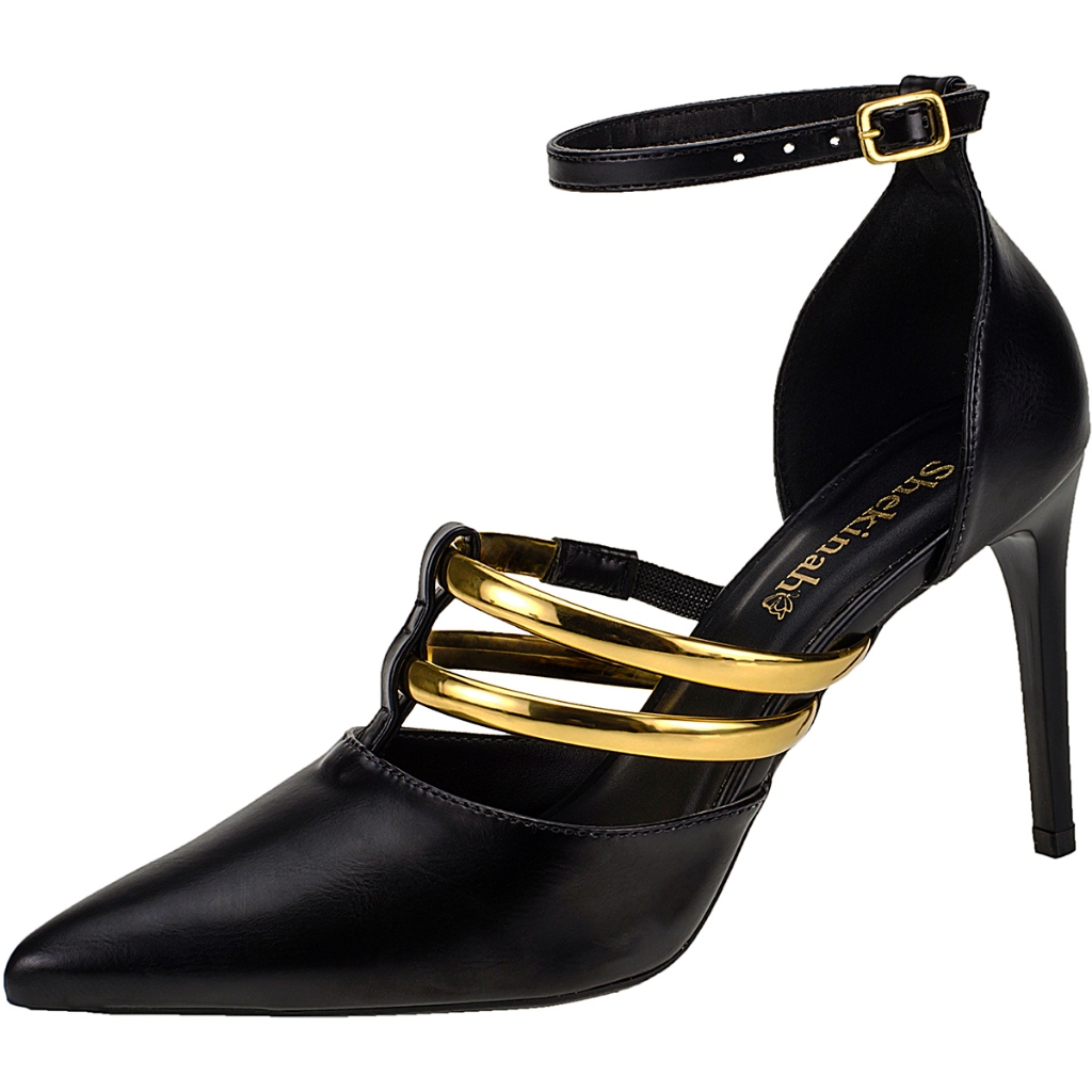 Sapato Scarpin Feminino Bico Fino Salto Agulha Shekinah Tiras Metalizadas Salto Alto Stiletto Moda
