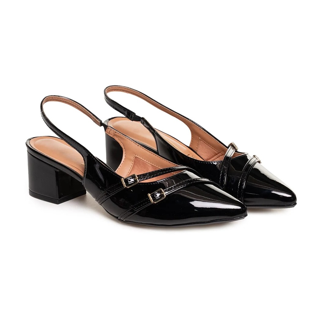 Sapato Scarpin Feminino Vizzano Slingback Verniz Bico Fino Salto Grosso Delicado Trabalho