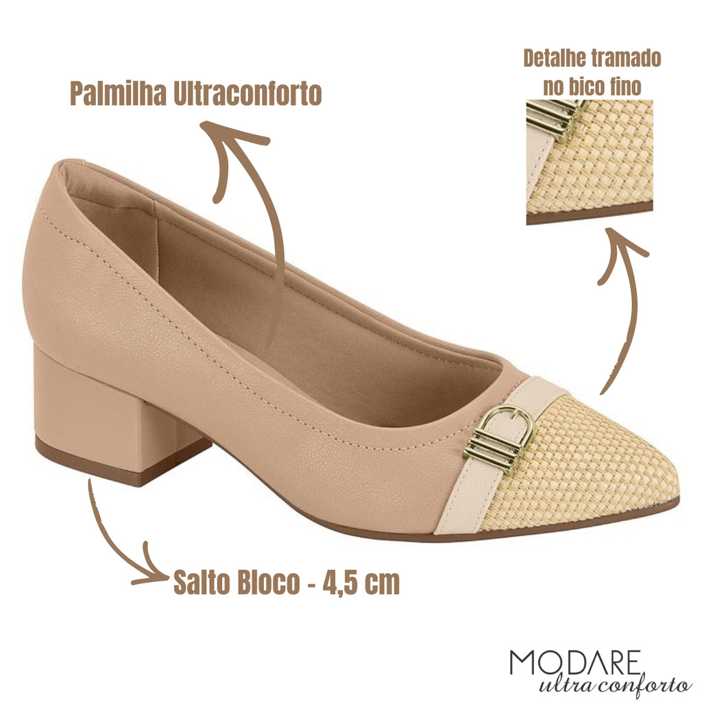 Sapato Scarpin Modare Ultraconforto Salto Bloco Bico Fino