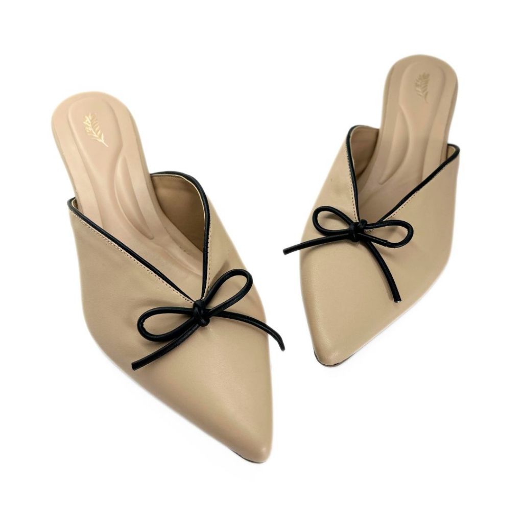 Sapato Scarpin Mule Aberto Casual Com Salto Baixo 6cm Com Laço