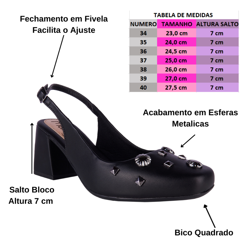 Sapato Scarpin Salto Geometrico com Apliques Slingback Bico Quadrado Confortável Lançamento