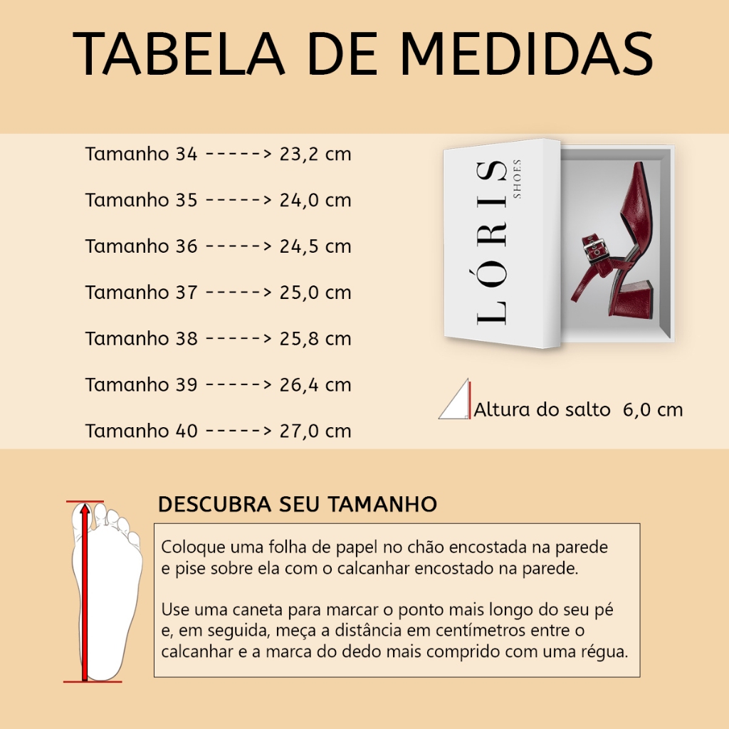 O Scarpin Feminino combina sofisticação e conforto para mulheres que não abrem mão de um look elegante. Com bico fino e salto bloco, ele oferece estabilidade e estilo ao mesmo tempo. O acabamento em verniz adiciona um toque de brilho e sofisticação, enquanto a fivela ajustável garante um ajuste perfeito ao pé. Ideal para o dia a dia, trabalho ou ocasiões especiais, esse modelo se destaca pelo conforto e versatilidade. • Salto bloco confortável • Material em verniz sofisticado • Bico fino elegante • Modelo de fivela em alta • Ideal para diversas ocasiões ••••••••••• TABELA DE MEDIDAS PALMILHA ••••••••••• Tamanho 34 -----> 23,2 cm Tamanho 35 -----> 24,0 cm Tamanho 36 -----> 24,5 cm Tamanho 37 -----> 25,0 cm Tamanho 38 -----> 25,8 cm Tamanho 39 -----> 26,4 cm Tamanho 40 -----> 27,0 cm ••••••••••• ESPECIFICAÇÕES DO PRODUTO ••••••••••• • Disponível nas cores: Preto, Off e Marsala • Material Interno: Forro Cacharrel Macio e Forro Sintético • Material Externo: Sintético Verniz Texturizado • Palmilha: Confortável e revestida em napa sintética com aplique da logo • Solado: PVC resistente e de qualidade • Altura do solado: 6cm • Fabricada com materiais de alta qualidade, esta sapatilha garante conforto durante todo o dia com elegância e estilo. • Direto da Fábrica. • Produto Original e Pronta Entrega. • Cada par é entregue em sua caixa individual, cuidadosamente embalado em um envelope plástico resistente. • Consulte nossa tabela de medidas antes da compra, para garantir o ajuste perfeito. •••••••••••••••••••••••••••••••••••••••••••••••••••••••• Bem-vindo à Lóris Shoes Oficial • Somos comprometidos com a excelência, nossos calçados são confeccionados com materiais premium de qualidade e acabamento primoroso. • Valorizamos a satisfação do cliente e buscamos sempre oferecer praticidade, envio rápido, qualidade e preços justos. • Assim como cada par de nossos sapatos é único, cada cliente é especial, e é por isso que buscamos oferecer um atendimento personalizado que você merece. • Queremos proporcionar a você a melhor experiência de compra. Entre no mundo da elegância e conforto com a Lóris Shoes Oficial. Compre agora o seu par perfeito e dê passos de confiança em grande estilo.