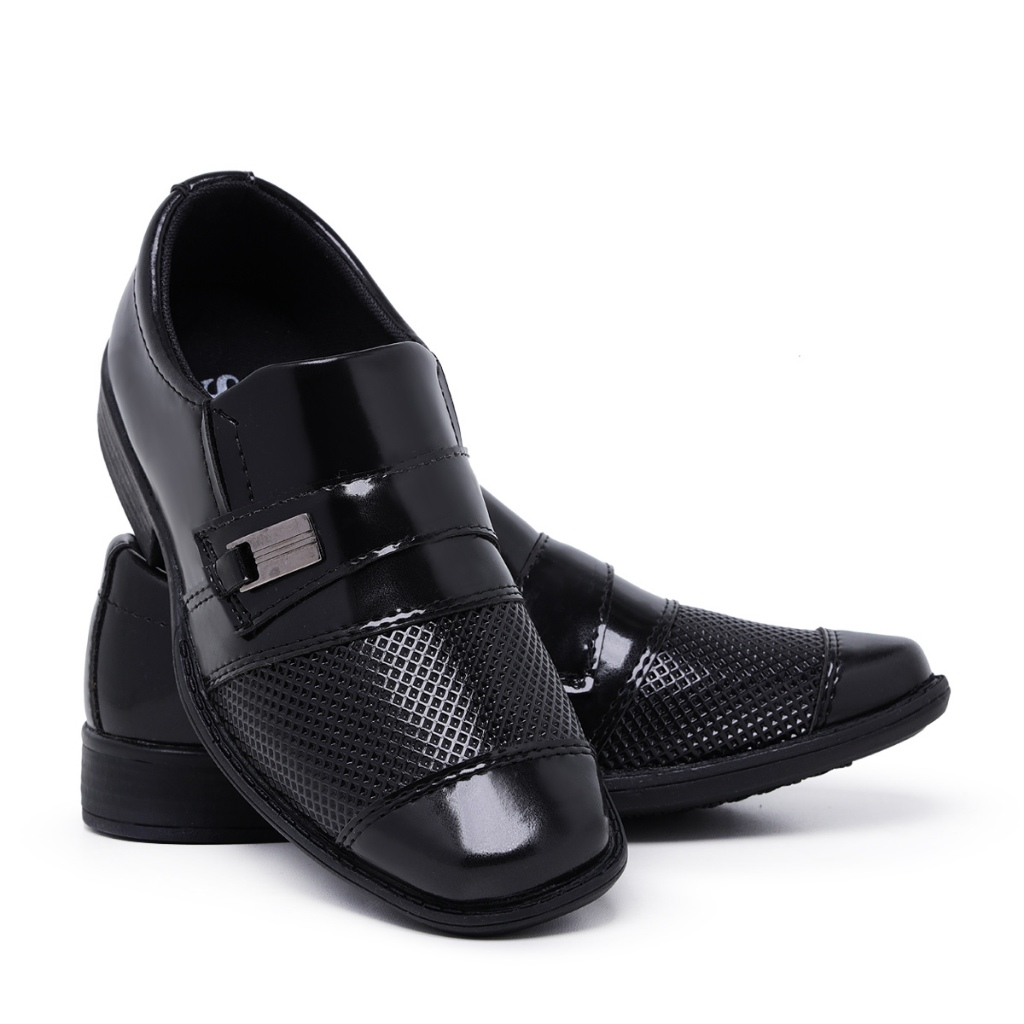Sapato Social Infantil Menino Bico Quadrado Verniz Moderno Esporte Fino