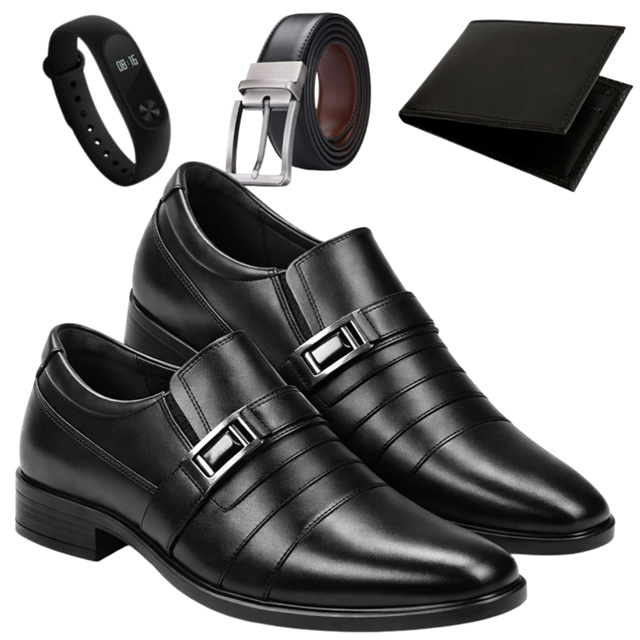 Sapato Social Masculino Confortável E Resistente + Cinto + Carteira + Relógio