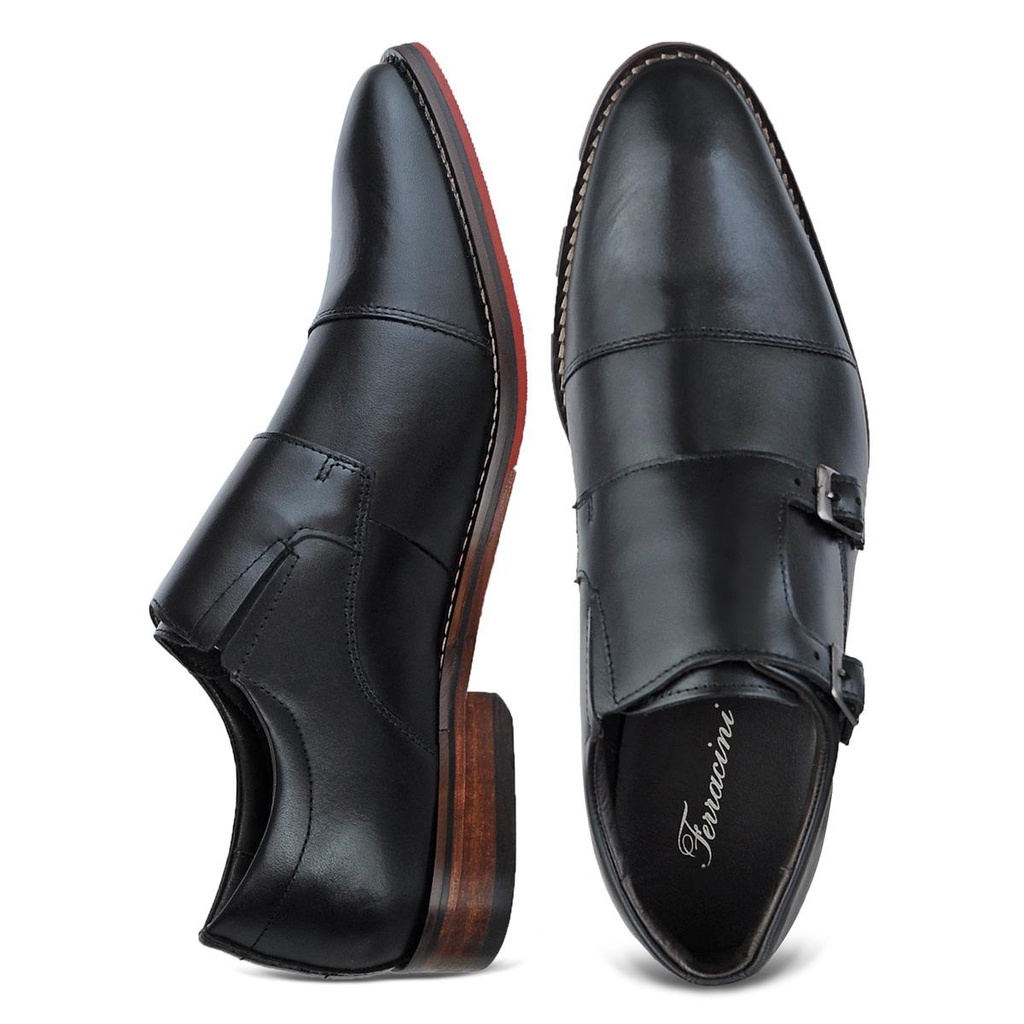 Sapato Social Masculino Couro Legitimo Ferracini Duas Fivelas Caravaggio Preto 5705-206G