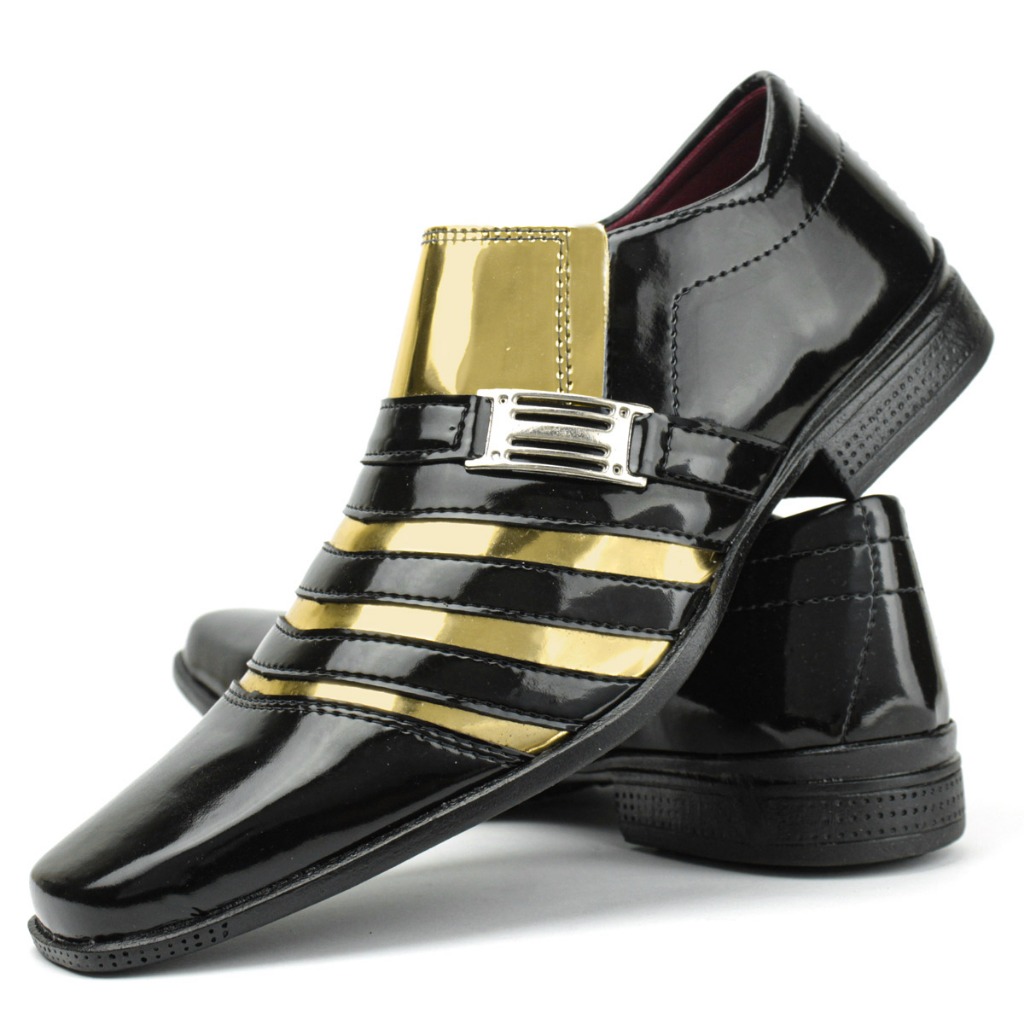Sapato social masculino estilo dourado kit 2 pares banco e preto com dourado