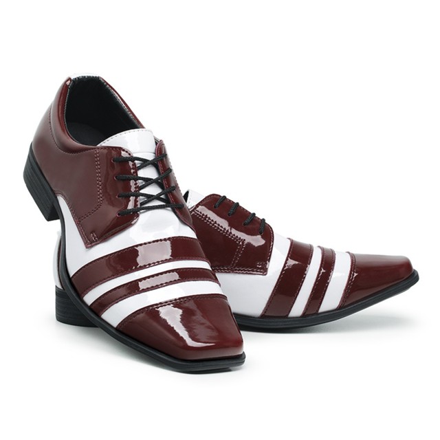 Sapato Social Masculino Italiano 840 Bordô Com Branco Conforto Casual Verniz Brilho Moderno