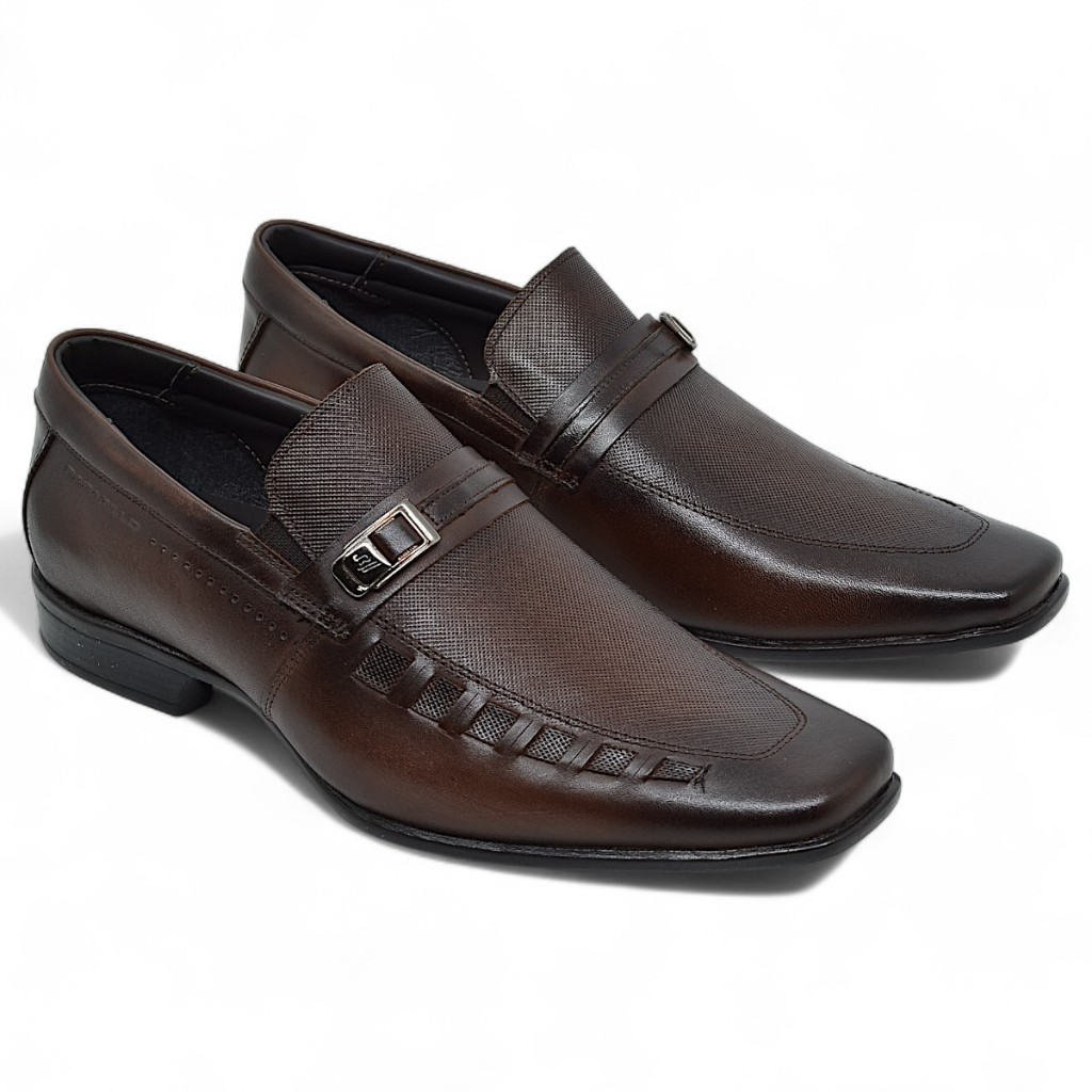 FORMA: Anatômica (ver tabela de medidas) CABEDAL: Couro legítimo, pin metálico PALMILHA: Anatômica macia, absorve impactos FECHAMENTO: Slip On com elástico lateral SOLADO: Borracha de alta qualidade, antiderrapante INTERIOR: Forrado em PU acolchoado e antitranspirante ESTILO: Social slip on, bico quadrado SALTO: Baixo e discreto CONTEÚDO DA CAIXA: 1 par de sapatos GARANTIA: 30 dias contra defeitos de fabricação ENVIO: Caixa original do fabricante O Sapato Social Rafarillo Masculino em Couro é a escolha perfeita para homens que buscam elegância, sofisticação e conforto em um único calçado. Versátil e moderno, ele se adapta tanto a ocasiões formais e eventos sociais quanto ao dia a dia no ambiente de trabalho, oferecendo um visual refinado e ao mesmo tempo prático. Confeccionado em couro legítimo de altíssima qualidade, o modelo apresenta resistência superior, durabilidade e acabamento impecável. O material nobre garante beleza, sofisticação e fácil manutenção, preservando por muito mais tempo a aparência de um calçado novo e bem cuidado. Seu design em estilo slip on traz praticidade e modernidade, com detalhe de elástico discreto nas laterais do cabedal, que além de facilitar o calce, proporciona ajuste seguro e confortável aos pés. Os cortes estratégicos no couro, aliados ao pin metálico no topo do cabedal, reforçam o estilo clássico com toques de requinte, tornando o sapato um verdadeiro destaque no vestuário masculino. O bico quadrado confere personalidade ao modelo, equilibrando elegância e imponência, ideal para composições que exigem sofisticação. Essa característica, somada ao sistema slip on, valoriza ainda mais o design e garante praticidade ao usuário. No quesito conforto, o sapato não decepciona: seu interior é totalmente forrado e acolchoado em PU, com ação antitranspirante que mantém os pés sempre secos e arejados. A palmilha anatômica e macia foi desenvolvida para absorver impactos e oferecer suporte durante o uso prolongado, assegurando bem-estar em todas as etapas do dia. O calçado possui salto baixo e discreto, na medida ideal para manter o porte elegante sem comprometer o conforto. Sua altura é projetada para oferecer estabilidade e ergonomia, garantindo postura correta e harmoniosa em qualquer ocasião. Por fim, o solado de borracha com frisos antiderrapantes proporciona segurança em cada passo, garantindo excelente aderência e tração em diferentes tipos de superfícies. Essa característica alia resistência e funcionalidade, completando um sapato que une o melhor do estilo clássico à praticidade moderna. TABELA DE MEDIDAS Tamanho 37 - 26,5cm Tamanho 38 - 27,1cm Tamanho 39 - 27,8cm Tamanho 40 - 28,5cm Tamanho 41 - 29,1cm Tamanho 42 - 29,8cm Tamanho 43 - 30,4cm Tamanho 44 - 31,1cm
