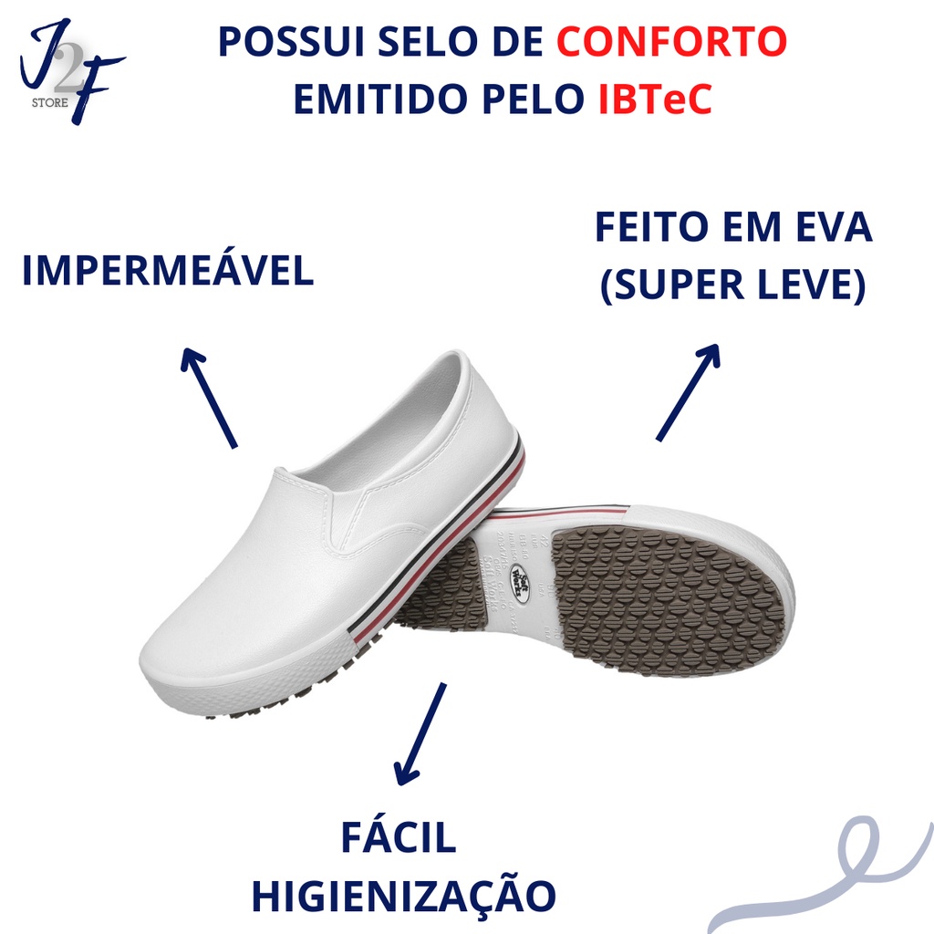 Descrição Sapato Tênis Iate Soft Works BB80 Branco Para Área Hospitalar Cozinha Com Faixas Claras CA 37212 Descrição: O Cabedal do tênis Works é confeccionado em EVA (Etil Vinil Acetato), um material super leve, que permite extremo conforto e alta absorção de impacto, O tênis Works possui design moderno, macio e flexível, proporcionando extremo conforto para quem usa. O Solado é composto por uma borracha especial, cuja formulação é específica para evitar escorregamentos, podendo ser utilizado em pisos molhados com resíduos de detergente, assim como em pisos de aço com solução de glicerol, entre outros. Possui Certificação SRC. Higienização: O tênis Soft Works pode ser limpo com água, sabão ou detergente. Também pode ser utilizado o Hipoclorito de Sódio (cloro) em sua forma mais concentrada, ou na diluída (água sanitária). É importante secá-lo à sombra ou secá-lo com um pano. Não deve colocá-lo em estufas, fornos ou locais com temperaturas elevadas. Normas: Fechado na parte superior e traseira, o tênis Works atende plenamente as exigências das Normas NR-32 da Segurança e Saúde dos Trabalhadores em Serviços de Saúde. Certificados: Este calçado está certificado pelo Ministério do Trabalho e possui o CA - CERTIFICADO DE APROVAÇÃO nº 37.212, atendendo todas as exigências da Norma ISO 20.347/2012. Aprovado Para: PROTEÇÃO DOS PÉS DO USUÁRIO CONTRA RISCOS DE NATUREZA LEVE, CONTRA AGENTES ABRASIVOS E ESCORIANTES E CONTRA UMIDADE PROVENIENTE DE OPERAÇÕES COM USO DE ÁGUA. Desde Já Agradecemos a Todos Os Nossos Clientes Pela Confiança e Preferência Depositada em Nossa Equipe. Muito importante para nossa Equipe a sua Qualificação Shopee, assim que o Produto chegar. Contamos com Uma Equipe Eficiente e Qualificada Para melhor atende-lo e tirar todas as Dúvidas. J2F STORE.