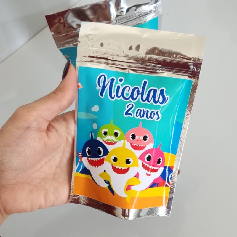 SAQUINHO METALIZADO BABY SHARK LEMBRANCINHA PERSONALIZADA PARA FESTA INFANTIL ANIVERSÁRIO MENINA OU MENINO