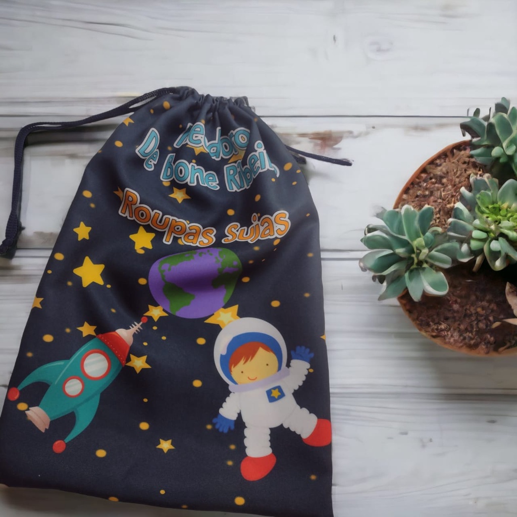 Saquinho organizador para Roupa Suja ASTRONAUTINHA PERSONALIZADO COM O NOME DA CRIANÇA