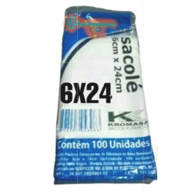 Saquinho Saco 6X24 Para Sacolé Talher Dindim Gelinho Juju Geladinho Chup-Chup Transparente Polietileno - 100/200/300 Un