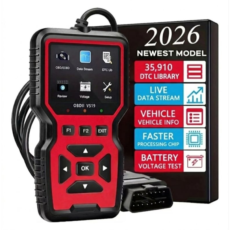 Scanner Automotivo OBD2 V519 Diagnóstico Completo do Motor O Scanner Automotivo V519 OBD2 é um equipamento prático e eficiente para diagnóstico eletrônico do motor, ideal para uso pessoal, mecânicos iniciantes e oficinas que precisam de uma ferramenta confiável para leitura de falhas do sistema OBD2. Compatível com a maioria dos veículos nacionais e importados que utilizam o padrão OBDII, o V519 permite identificar problemas rapidamente, economizando tempo e evitando gastos desnecessários com diagnósticos básicos.Funções Principais Leitura e apagamento de códigos de falha do motor (Check Engine) Exibição da descrição dos códigos de erro (DTC) Dados do motor em tempo real (Live Data) Função Freeze Frame (dados no momento da falha) Status de prontidão I/M Readiness Teste de sensores (02, EVAP - Modo 6 e Modo 8) Leitura de informações do veículo (VIN, CID, CVN) Teste de voltagem da bateria Biblioteca interna com milhares de códigos de falha Interface em Portugues