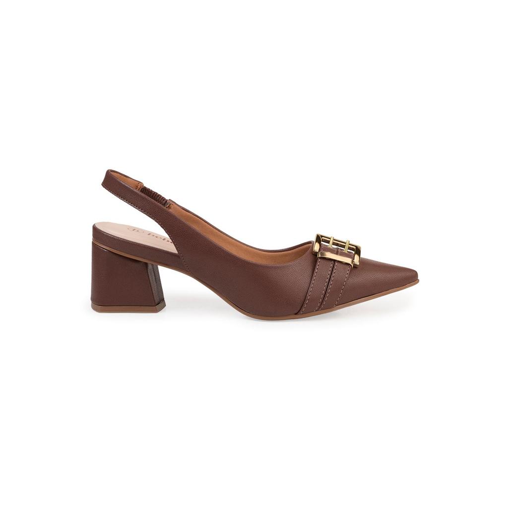Scarpin Bebecê Salto Bloco Com Bico Fino E Fivela Decorativa