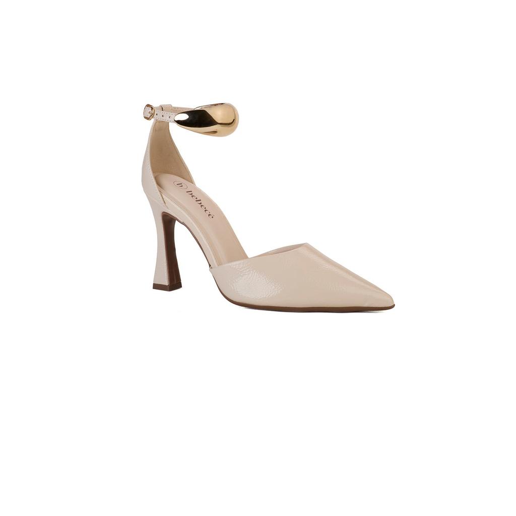 Scarpin Bebecê Salto Fino Semi Aberto com Enfeite Moderno