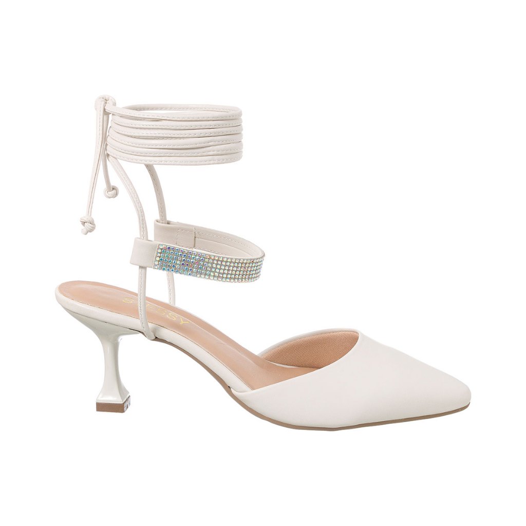 Scarpin Bico Fino Sandálias Feminina Salto Taça Baixo Strass Brilho Amarrar Conforto Elegante Leve
