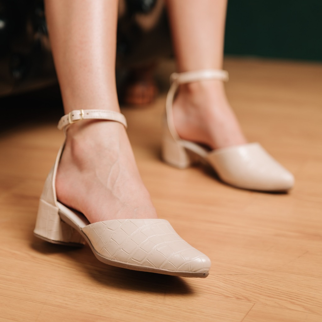 Scarpin Feminino Bico Fino Croco Salto Grosso Mule Confortável