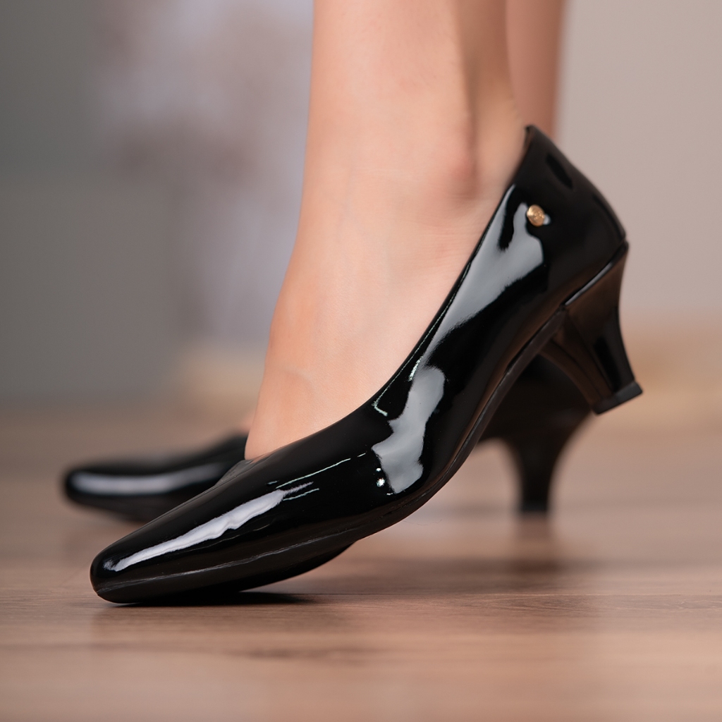 Scarpin Feminino Domidona Salto Baixo Verniz Bico Fino Elegante Moda