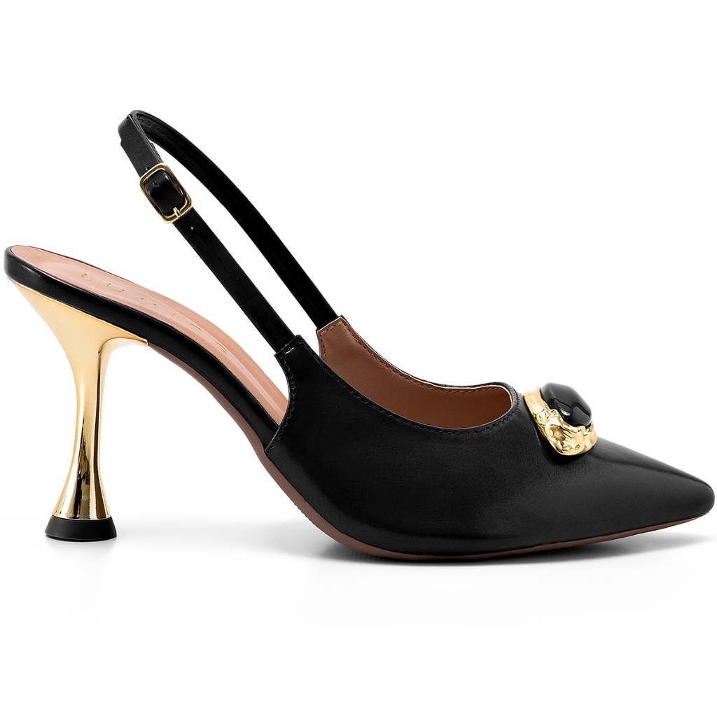 Para mulheres que valorizam sofisticação nos detalhes. Esse scarpin slingback traz bico fino, salto metalizado e um adorno frontal marcante, com acabamento dourado e pedra esmaltada. Uma peça que transforma qualquer look em uma produção refinada e moderna. ..:::.. ESPECIFICAÇÕES DO PRODUTO ..:::.. *Material - Napa Sintética *Solado - PVC Expandido, não escorrega, emborrachado, não faz barulho, anti-derrapante. *Altura do Salto - 9,0 cm. *Palmilha - Confortável com aplique da logo. Medida aproximada dos pés para cada numeração: Tamanho 34 --- 22,5 cm Tamanho 35 --- 23,3 cm Tamanho 36 --- 23,7 cm Tamanho 37 --- 24,2 cm Tamanho 38 --- 24,8 cm Tamanho 39 --- 25,2 cm SOBRE A LUMISS: Desde 2018, brilha no coração da Lumiss a inovação para calçados femininos. Nascida como Amorelle, a marca é fruto do sonho de um visionário que sempre acreditou na possibilidade de fabricar calçados que surpreendessem o mercado, tanto pela variedade quanto por seus preços acessíveis. Com muito trabalho em família, essa ideia foi levada adiante, fortalecendo uma marca que hoje é referência nacional em calçados femininos, com presença marcante nos marketplaces e mais de dois milhões de pares já entregues em todo o Brasil. Comprometida com cada cliente, a Lumiss oferece as maiores tendências do mundo da moda a partir de materiais que garantem conforto, qualidade, sofisticação e estilo aos pés da mulher brasileira, encantando até mesmo os perfis mais exigentes. Além disso, a empresa se preocupa em oferecer a melhor experiência de compra, com total segurança e praticidade. Lumiss é mais que uma marca. É uma ideia que chegou para mostrar que todas as mulheres podem brilhar e ser ainda mais lindas e confiantes com calçados que as valorizam em todos os aspectos.