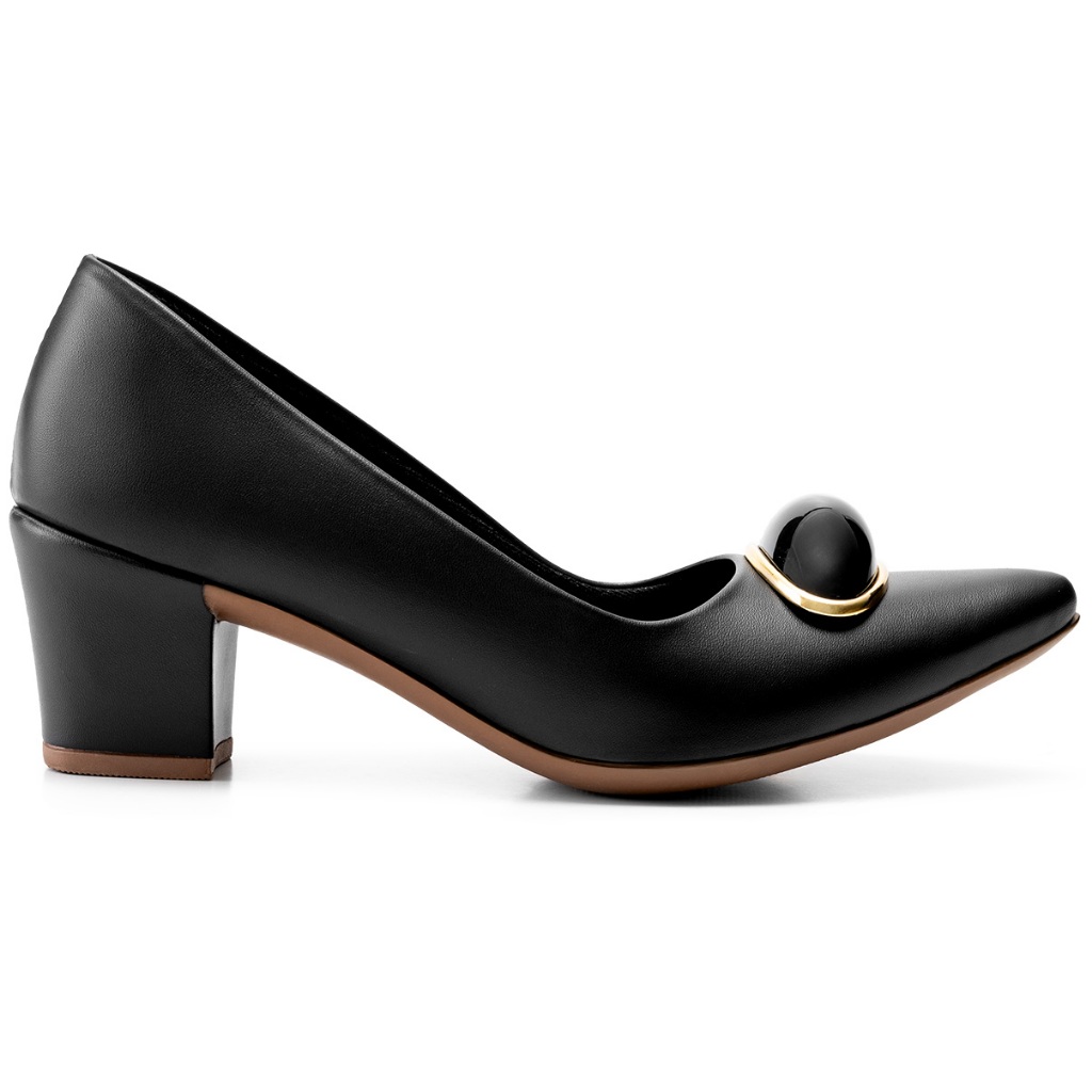 Scarpin Feminino Lumiss Confortável Enfeite Salto Bloco Baixo Preto