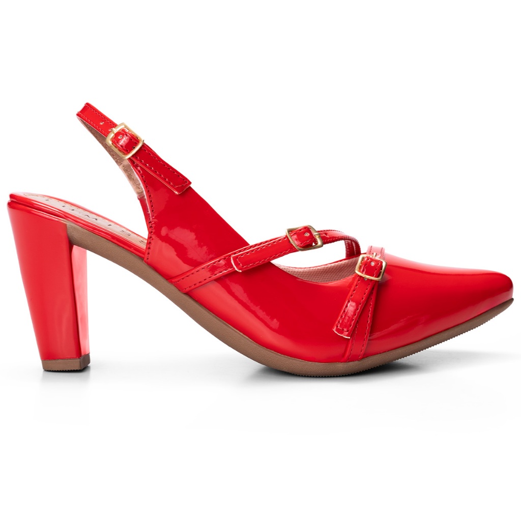 Scarpin Feminino Lumiss Confortável Slingback Fivelas Salto Fino Bico Fino Verniz Vermelho