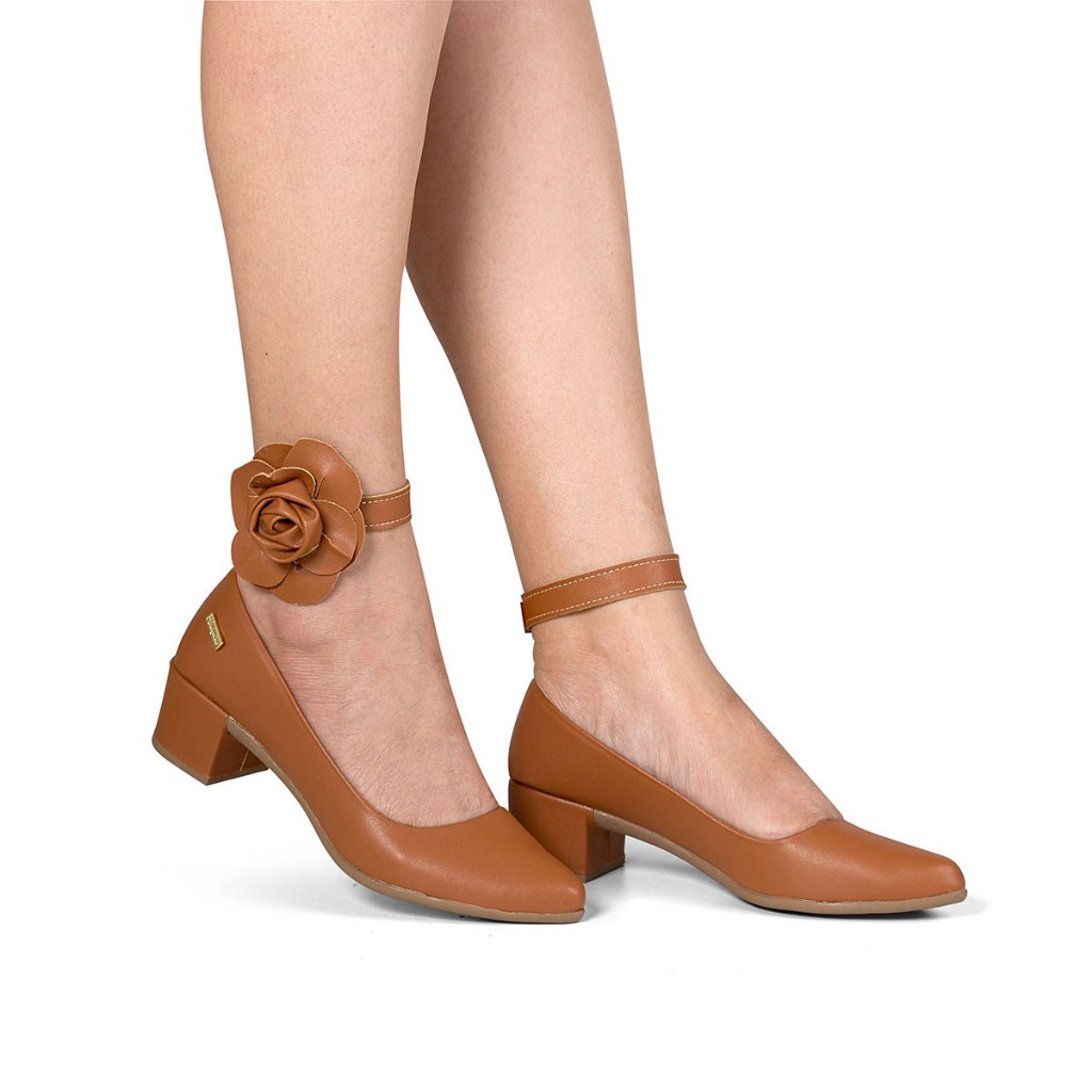 Scarpin Feminino Sapato Confortável Detalhe Flor Delicado Salto Baixo Grosso 34 a 40 Promoção Lançamento